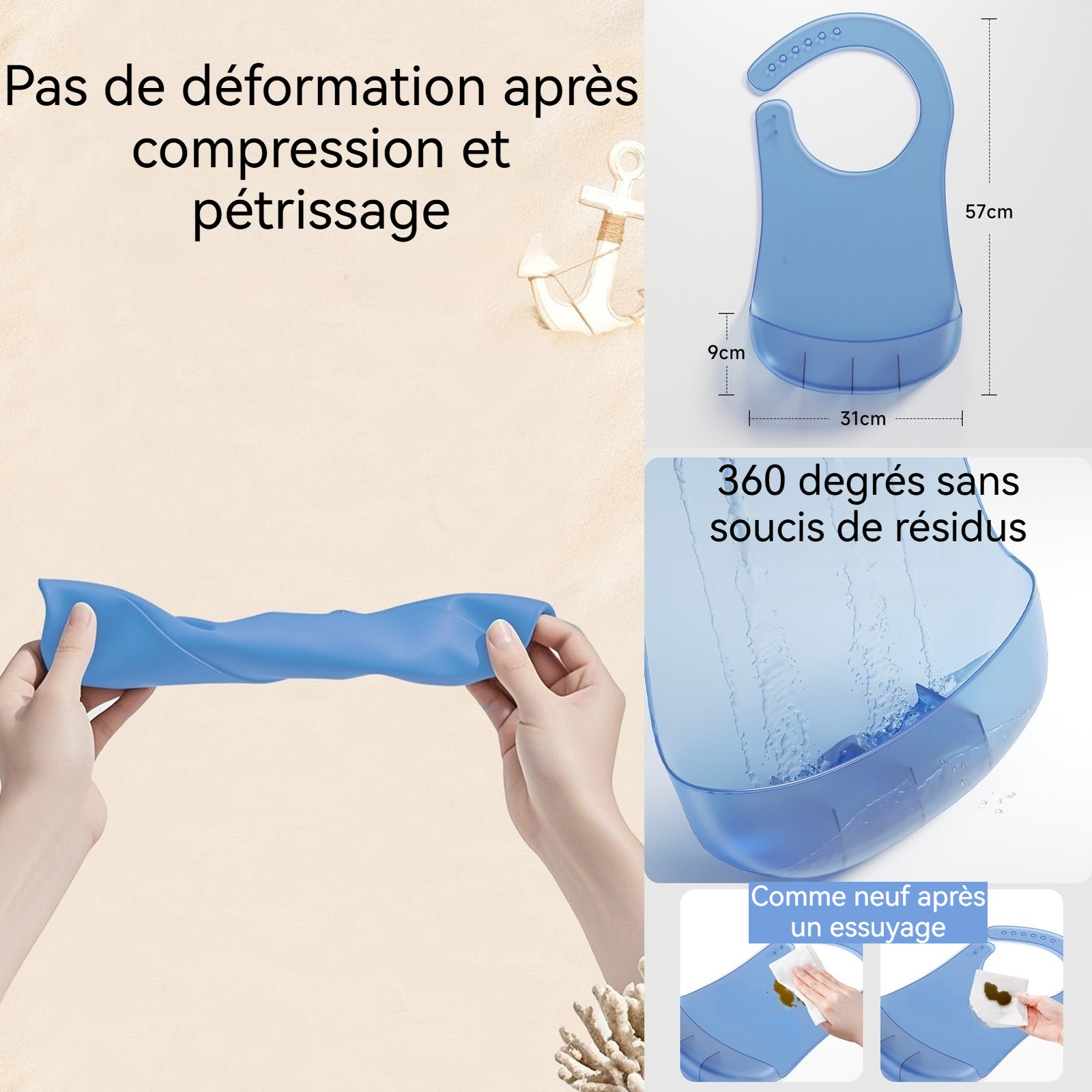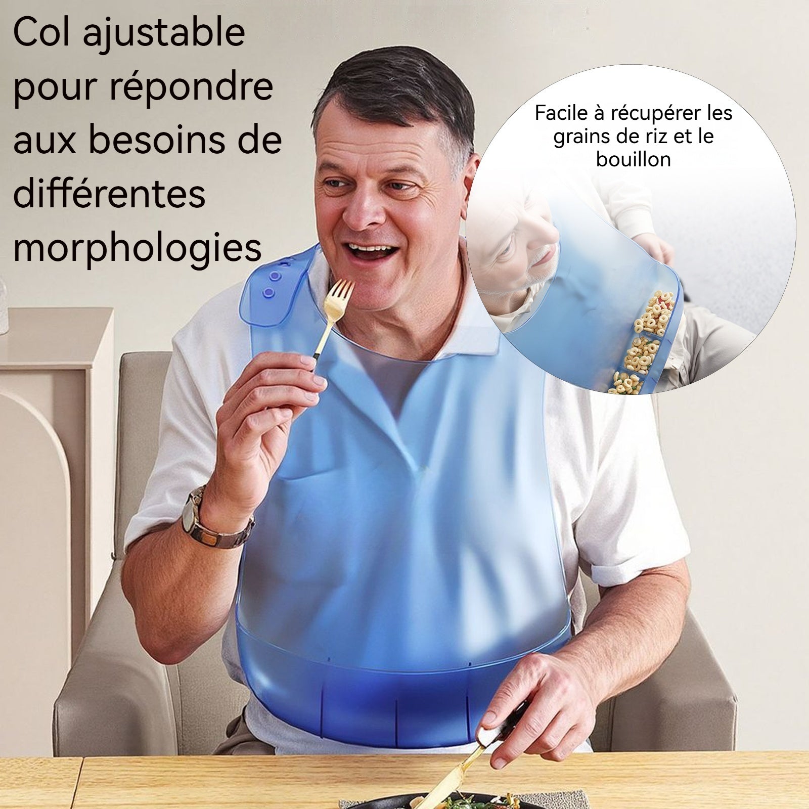 Bavoir pour adulte 57x31cm Ajustement réglable sur 6 positions Poches de maintien 3D Léger et confortable Facile à enrouler