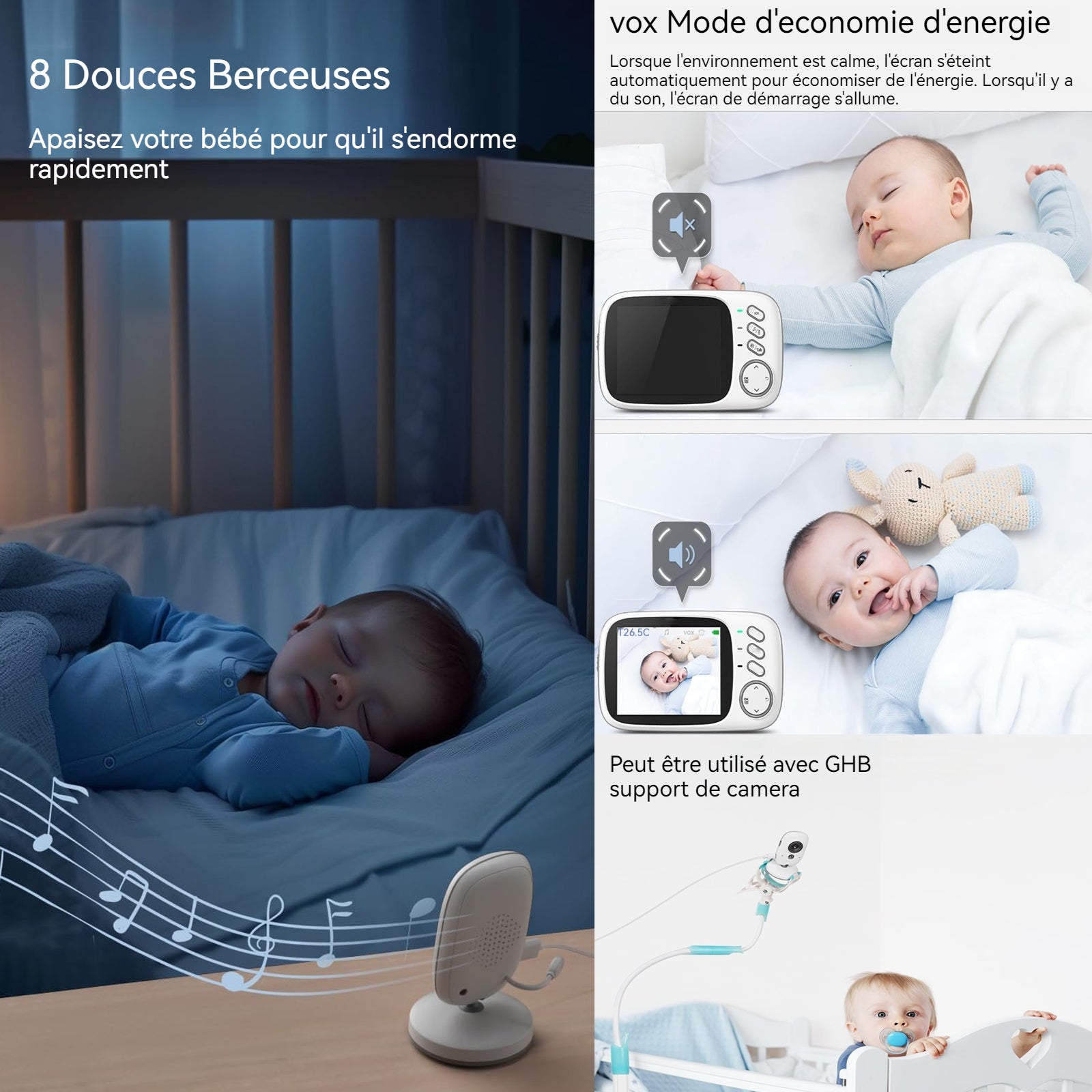 Babyphone caméra vidéo 3.2 inch 750mah interphone bidirectionnel affichage de la température lecture de musique babyphone vidéo