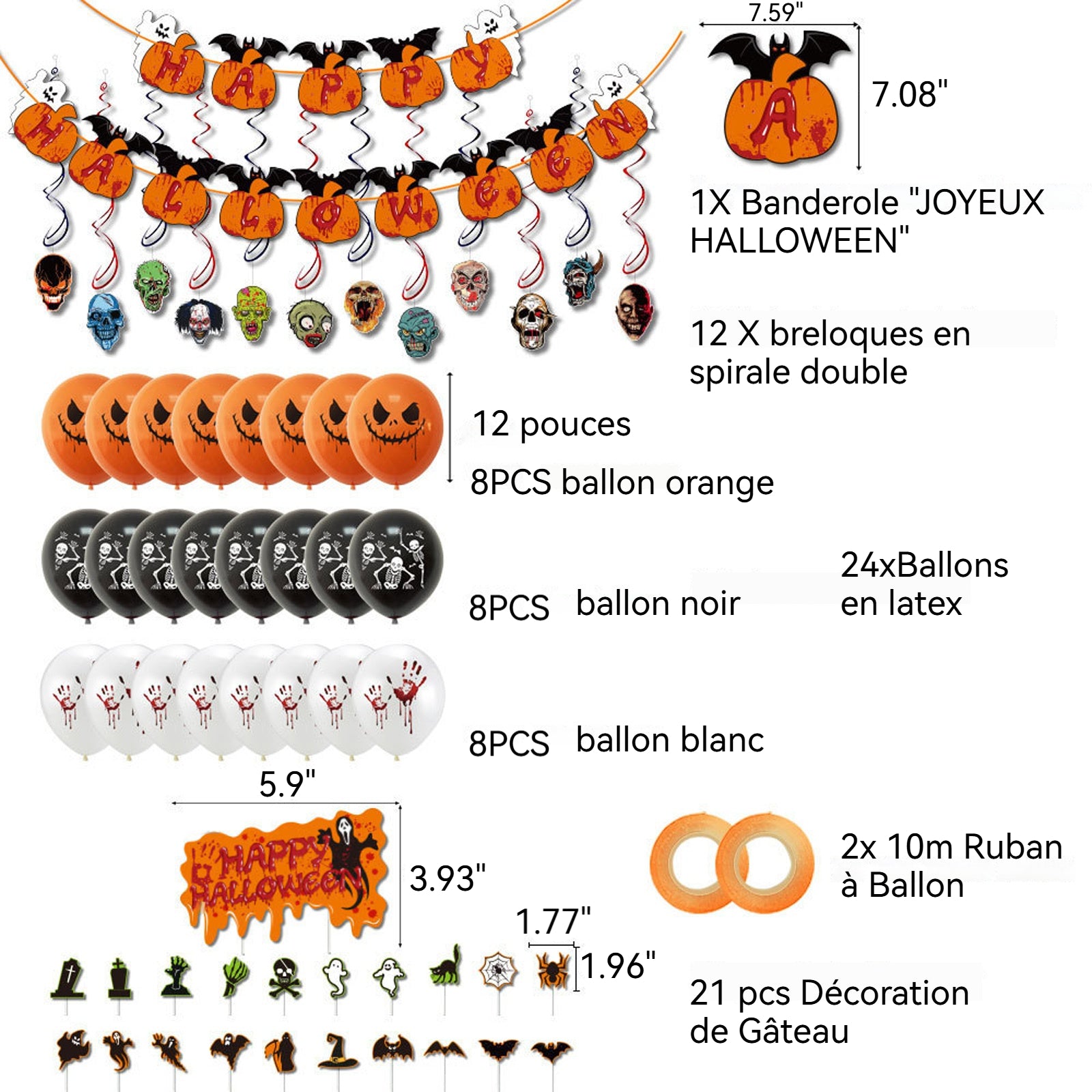 Ballon 59 pcs Drapeau de décoration d'Halloween Ensemble de fête fête à thème d'Halloween Contient une variété d'accessoires