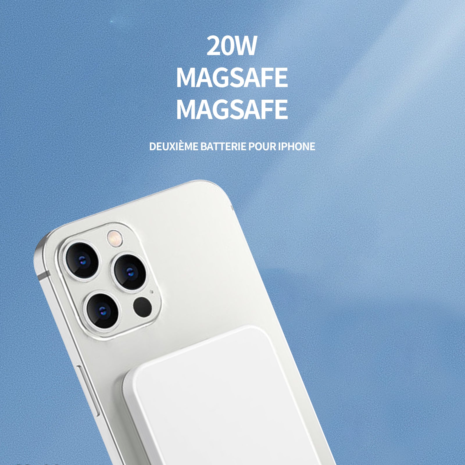 Batterie externe 5000mAh Blanc pratique Batterie externe magnétique Batterie Externe Magsafe Batterie Externe Magnétique sans Fil