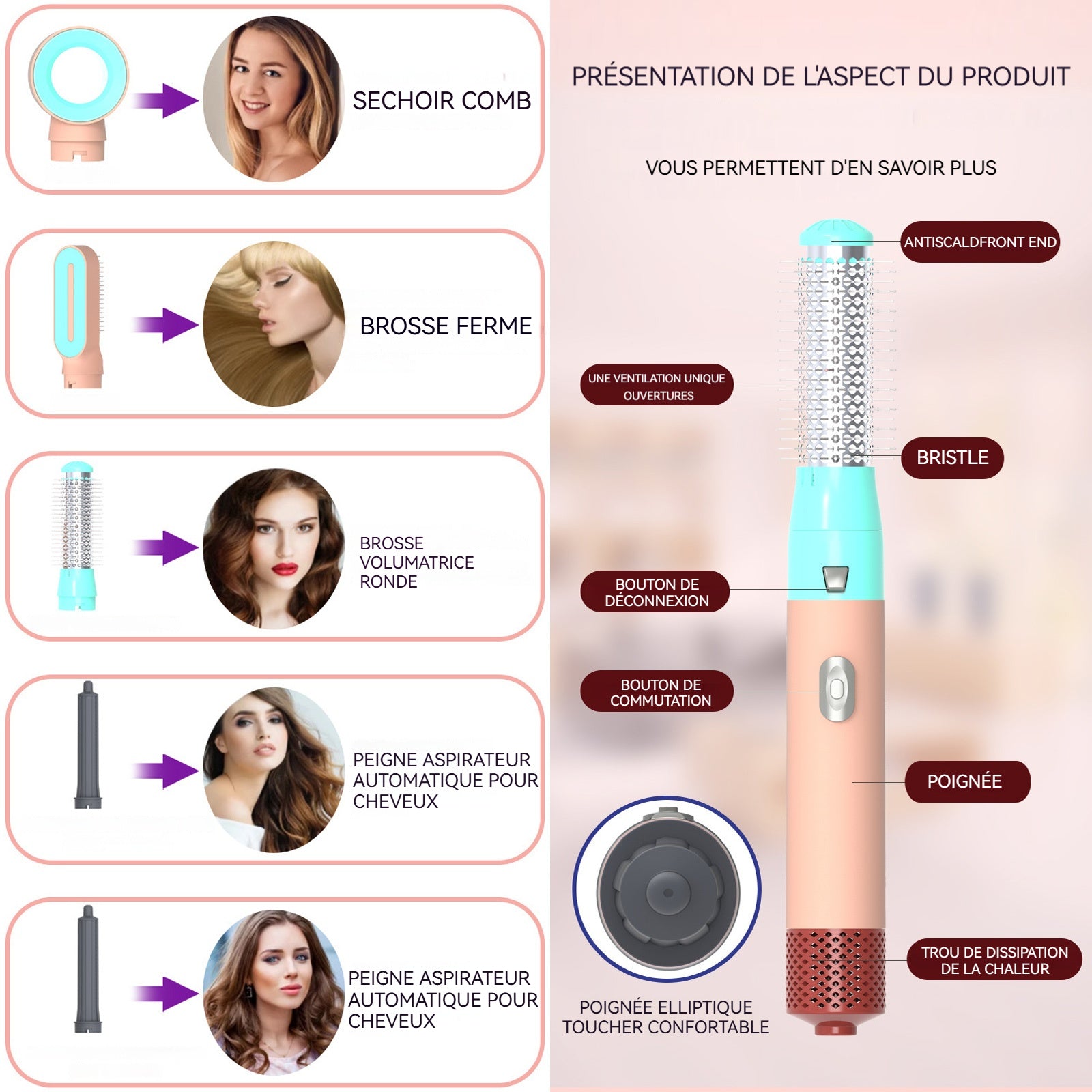 Nom du produit : peigne à air chaud multifonctionnel cinq en un.