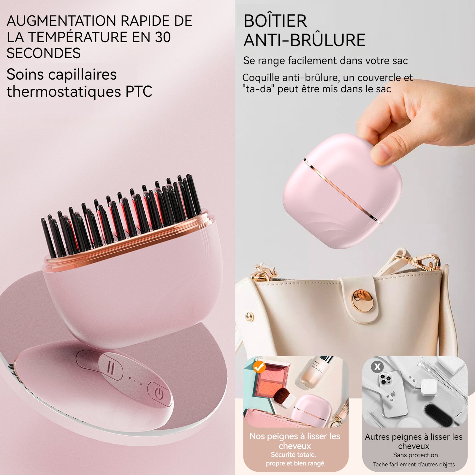 Brosse lissante pour cheveux mini portable rechargeable multifonctionnel 2 en 1 cheveux raides et bouclés 3 réglages températur