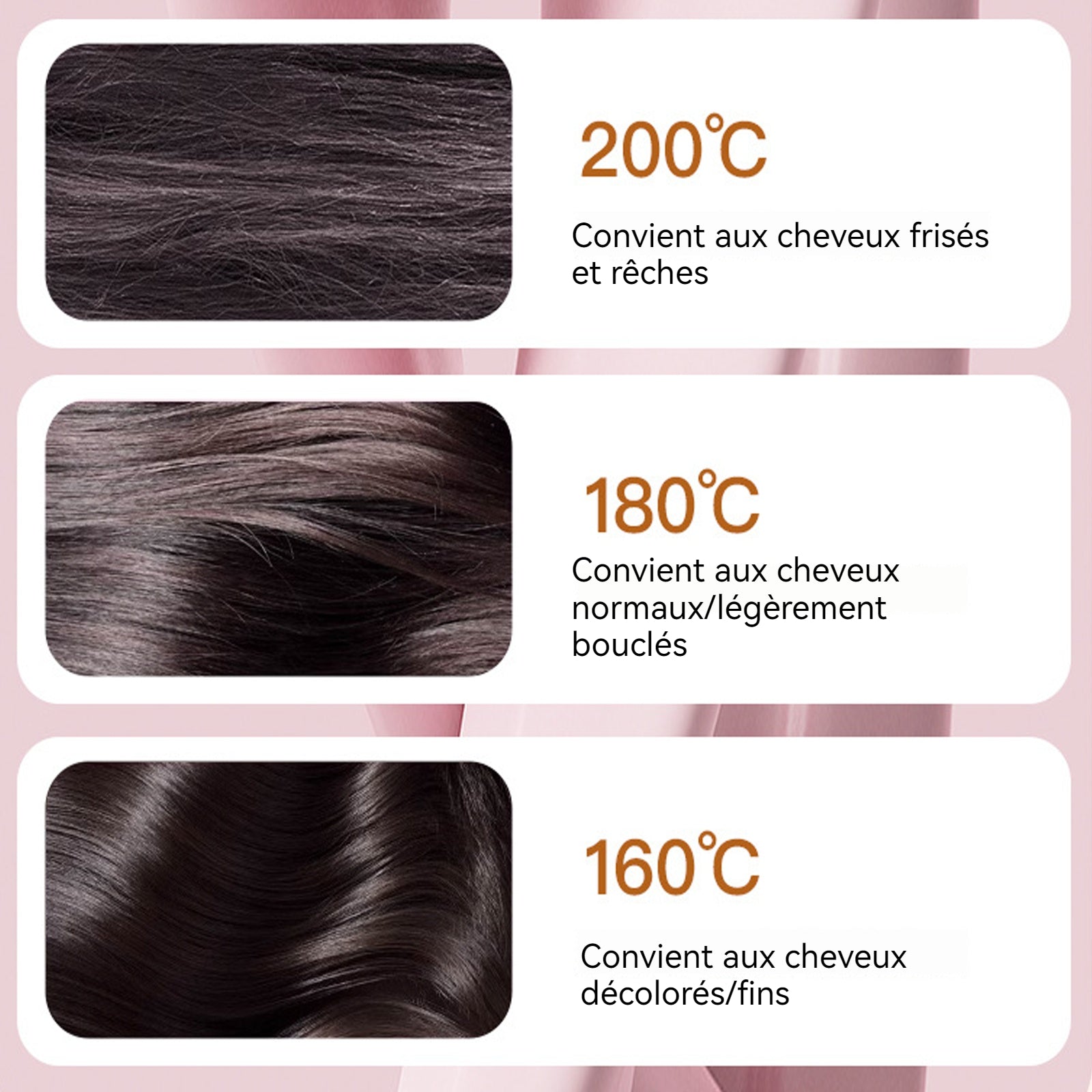 3. Réglage du contrôle de la température : ce mini peigne à lisser fournit 3 vitesses de contrôle de la température. Vous pouvez choisir la température appropriée en fonction des différents types de cheveux et des besoins de coiffage pour obtenir des effets de coiffage personnalisés tout en réduisant les dommages à vos cheveux.