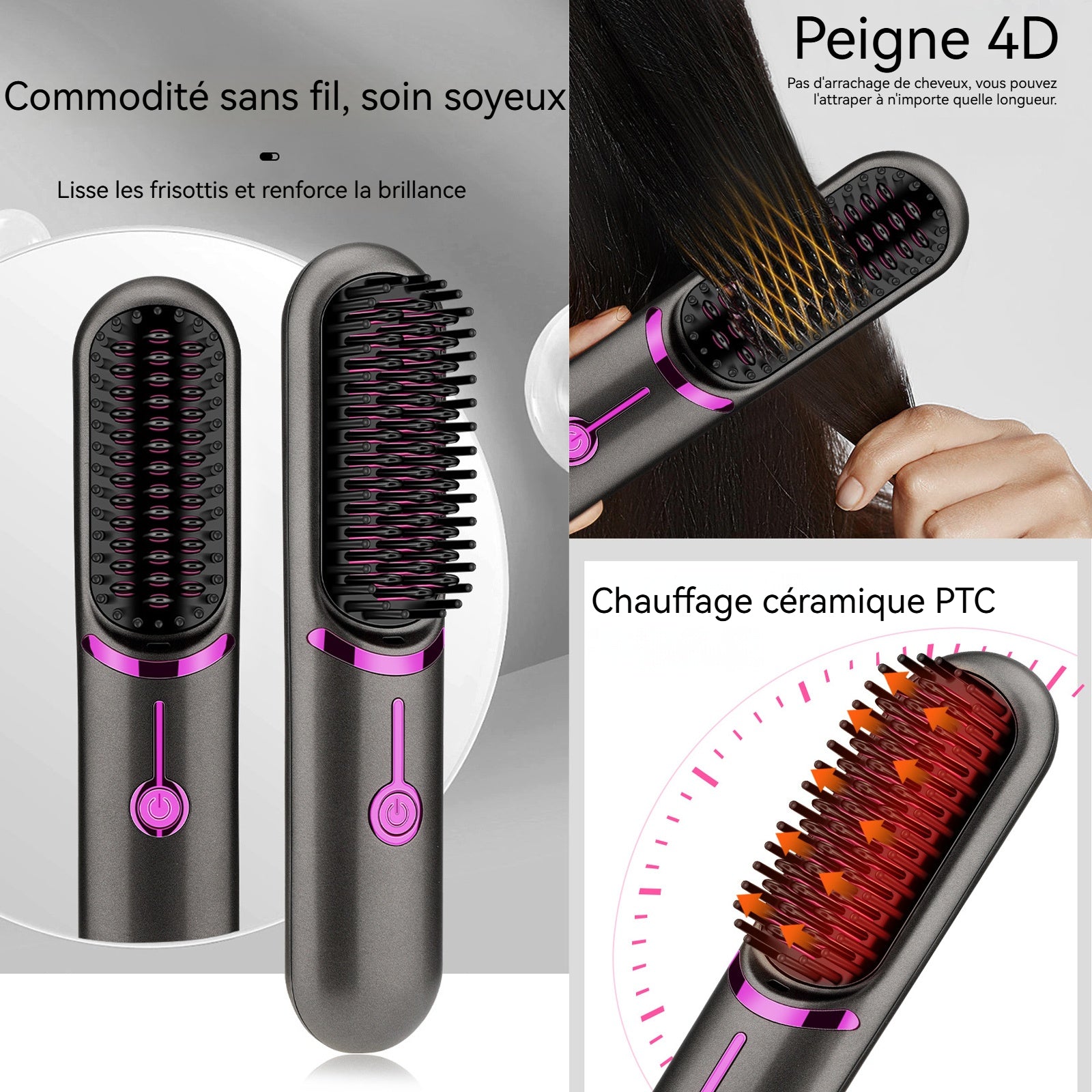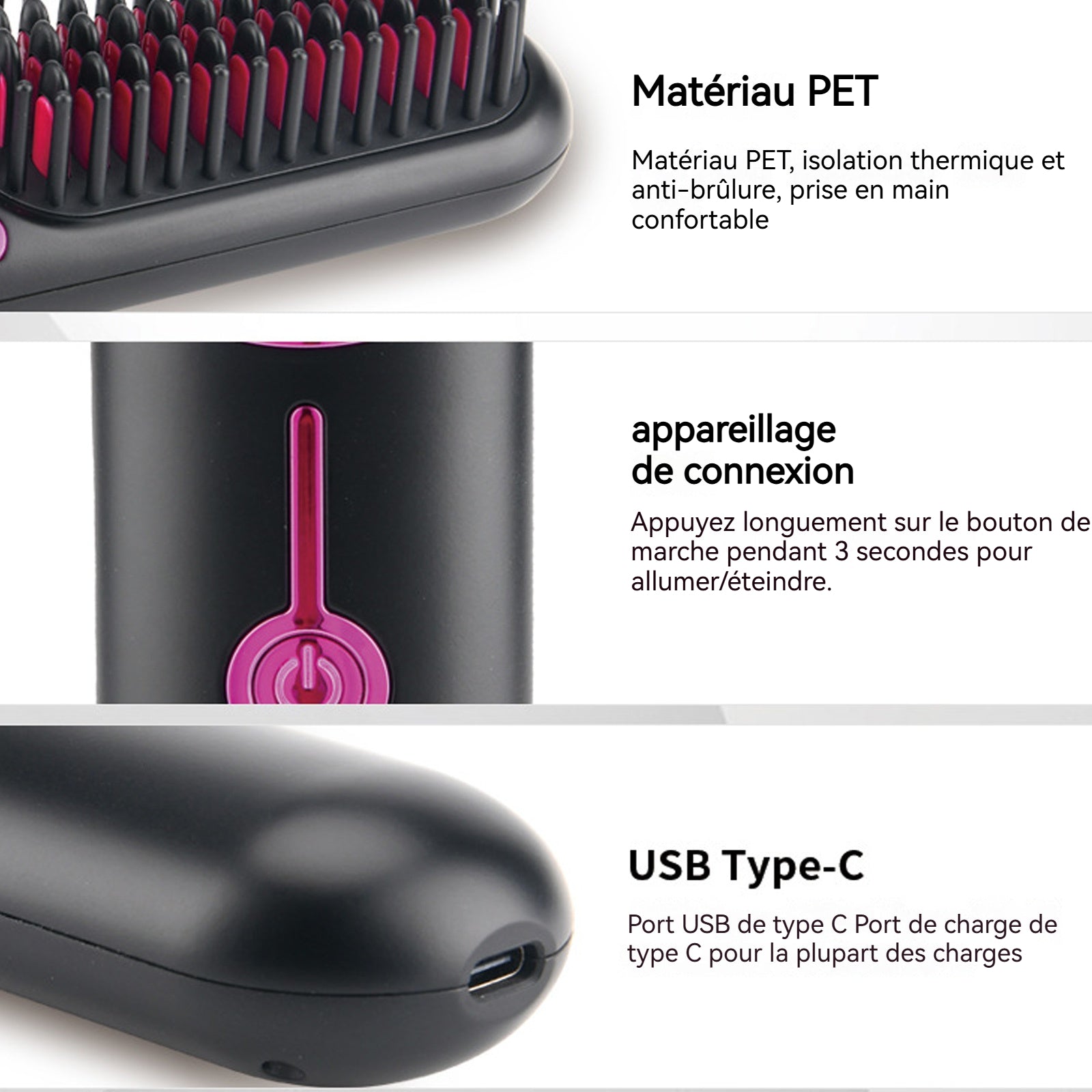 Brosse lissante pour cheveux pet céramique rechargeable cheveux lisses et bouclés 2 en 1 lisseur cheveux professionnel sans fil