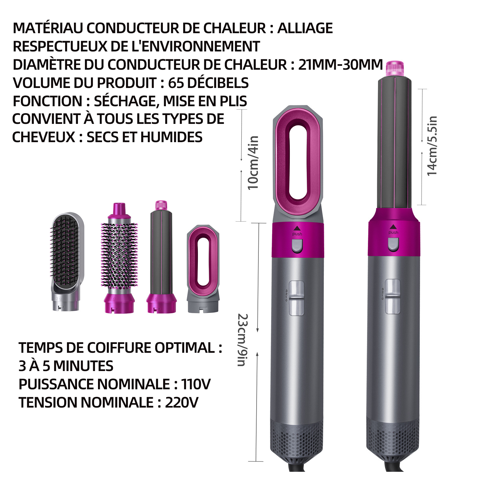 Brosse soufflante 5 en 1 sèche cheveux ionique avec brosse lissante pour cheveux boucleur coiffante chauffante pour lisser sécher