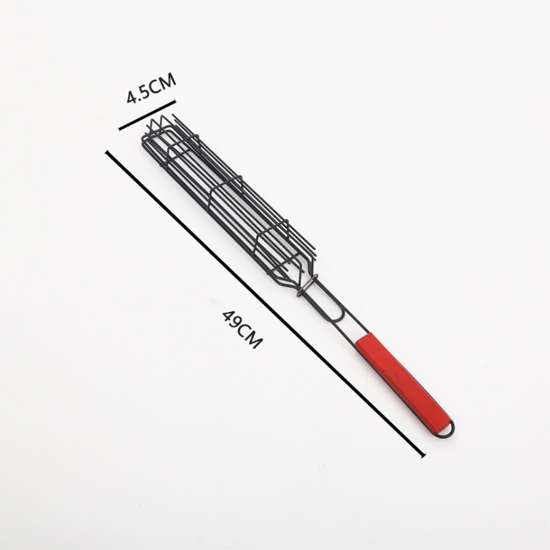 Barbecue extérieur maille clip poignée en bois barbecue poignée de main saucisse grillée brochettes de hot-dog maille de barb