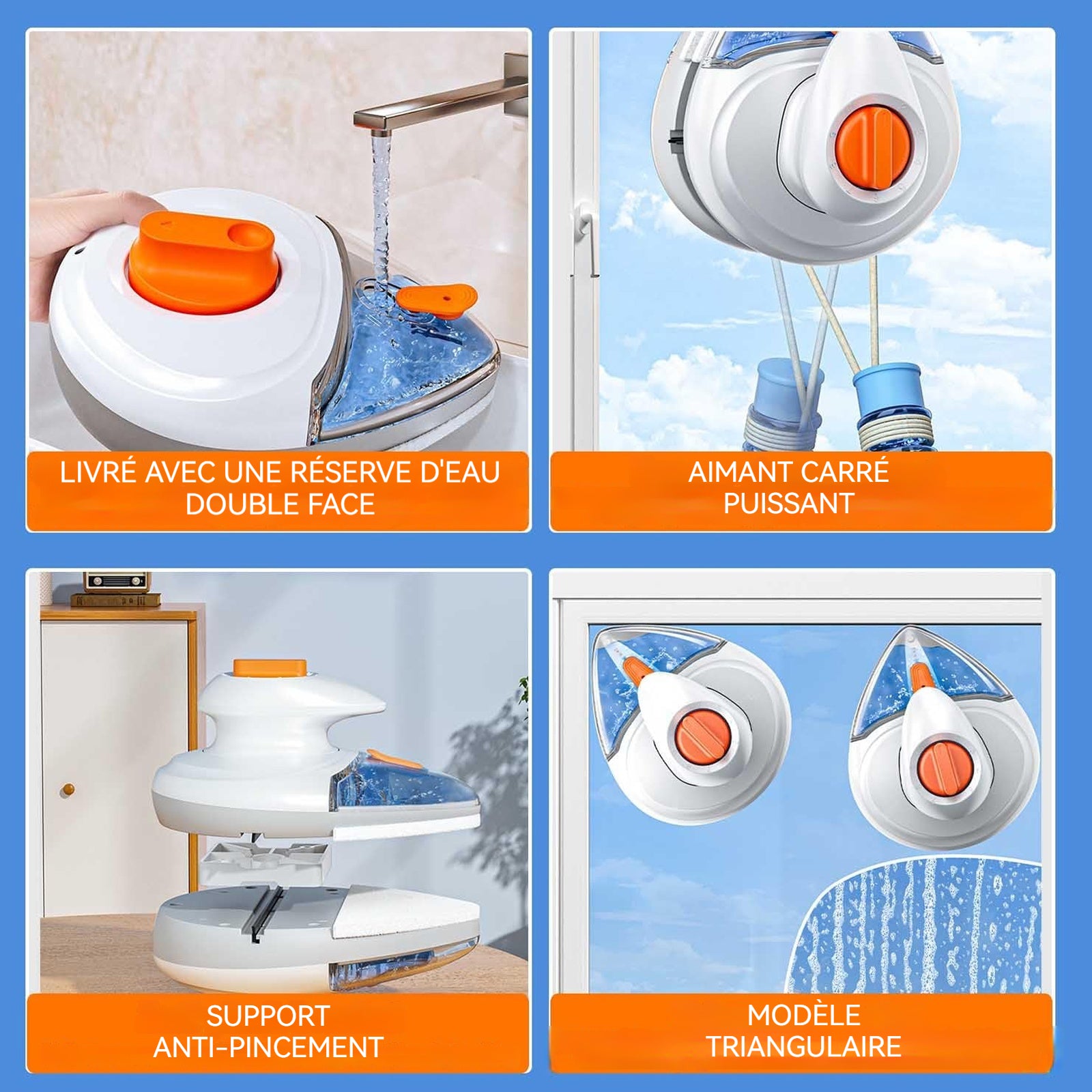 Nettoyeur de vitres magnétique double face 10 niveaux sortie d'eau automatique lave-vitre electrique pour double verre de 5 à 25mm